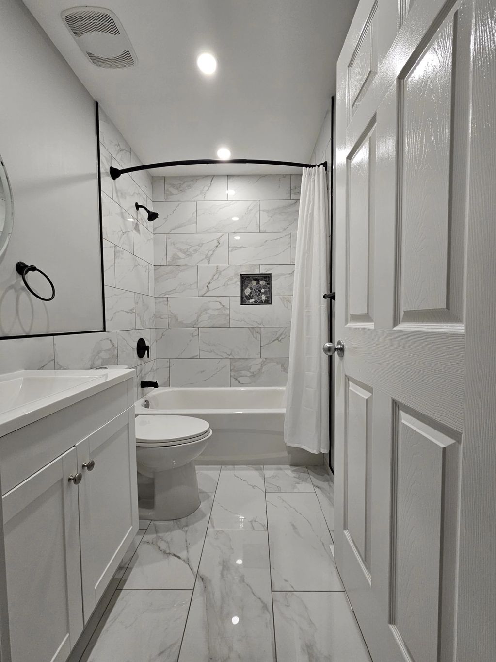 We renovate bathrooms of all sizes and shapes. Many different designs, material selections and layouts. Ask us about your next bathroom renovation.